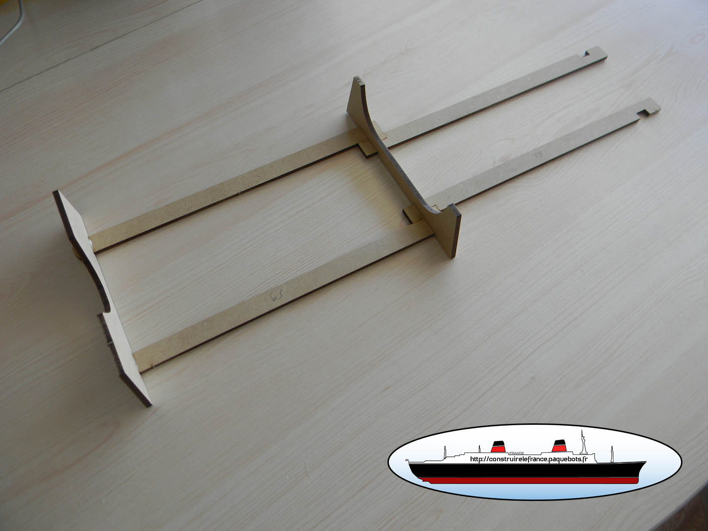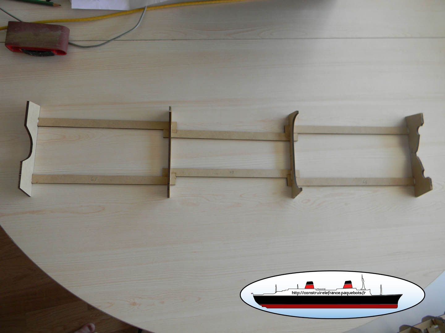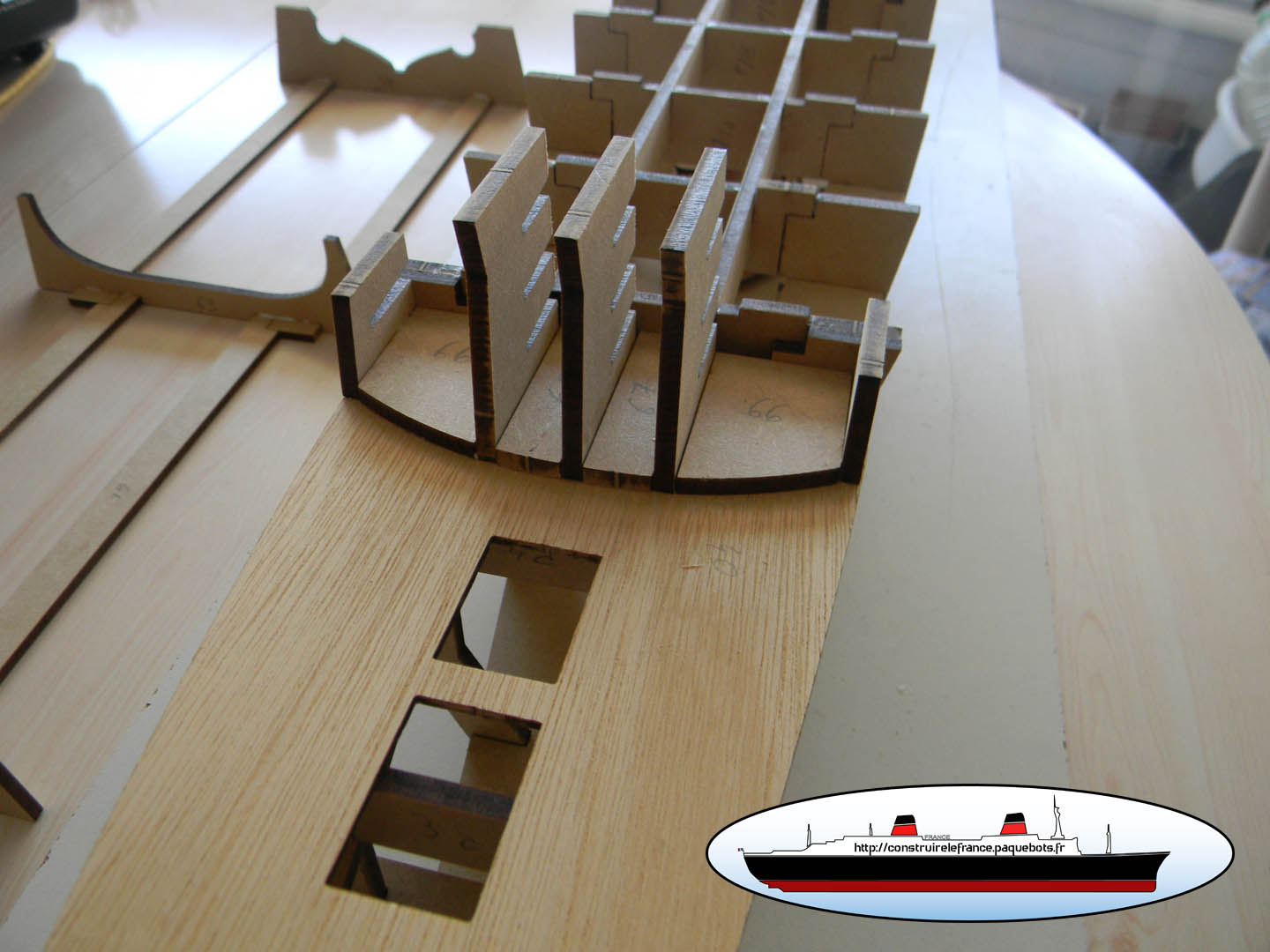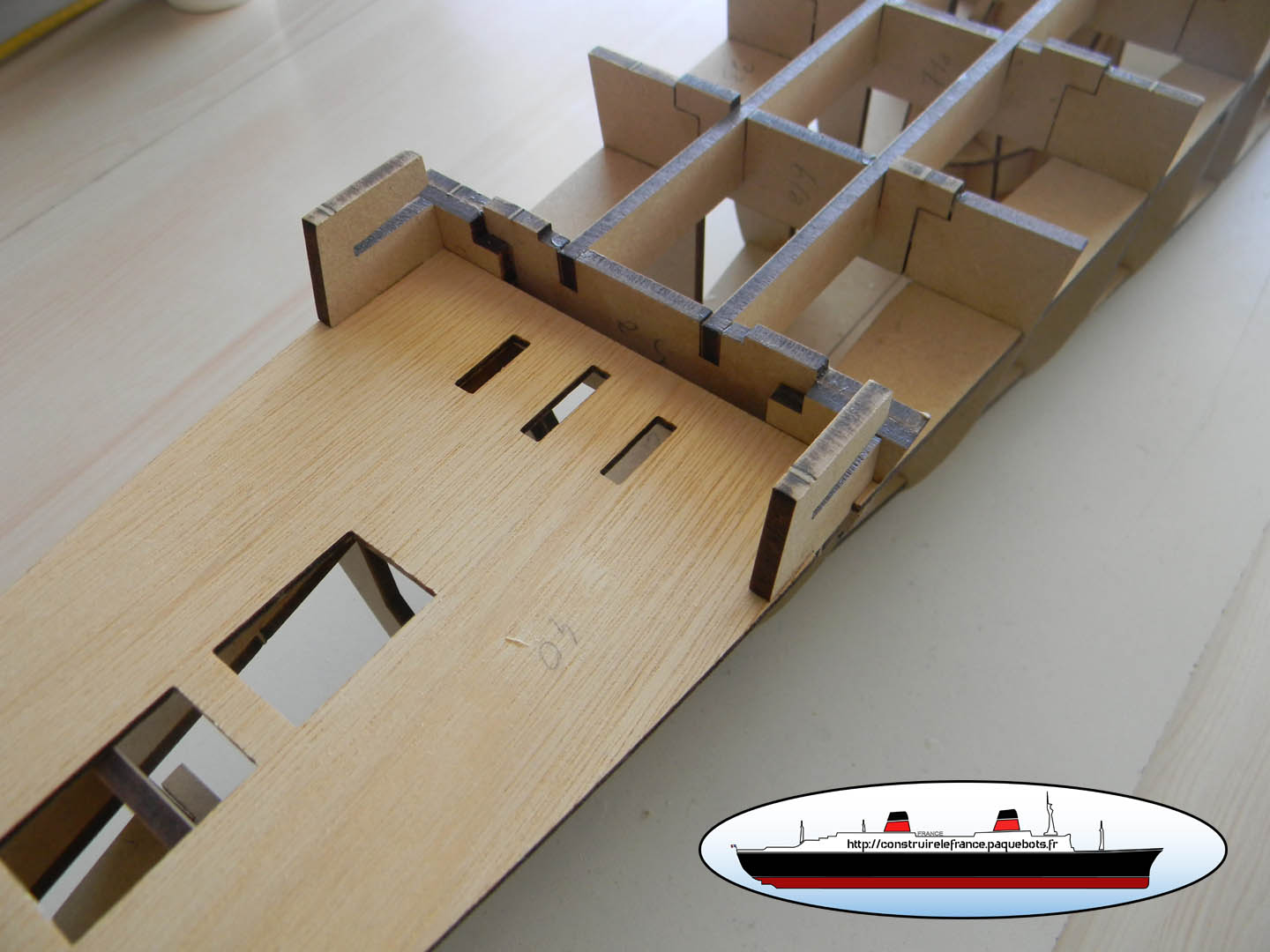 Construction de la maquette en bois du paquebot France