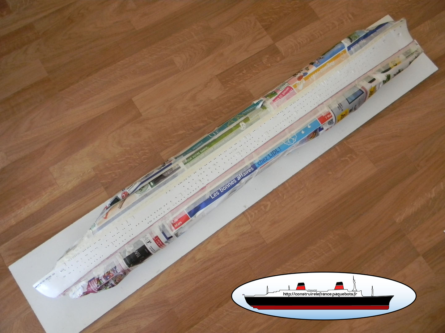 Construction de la maquette en bois du paquebot France