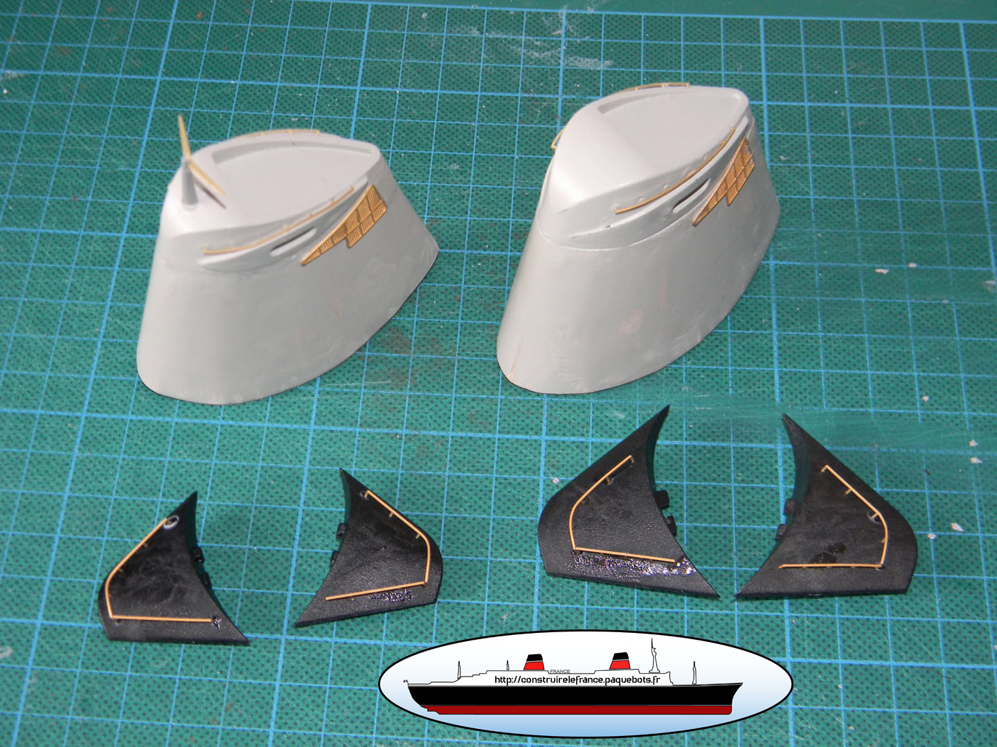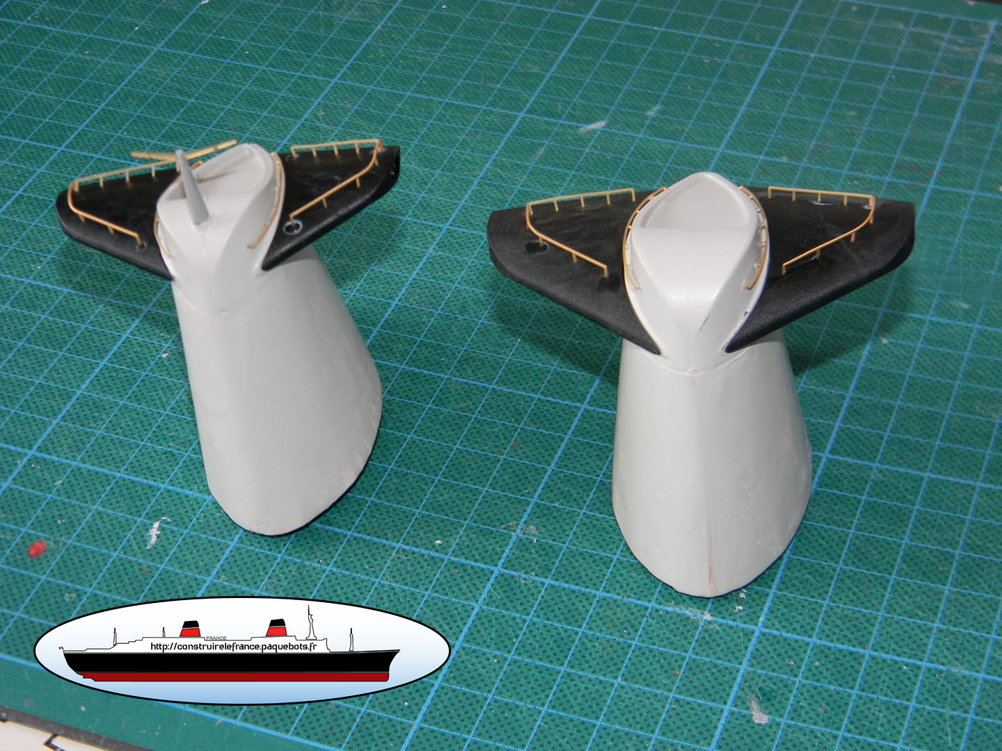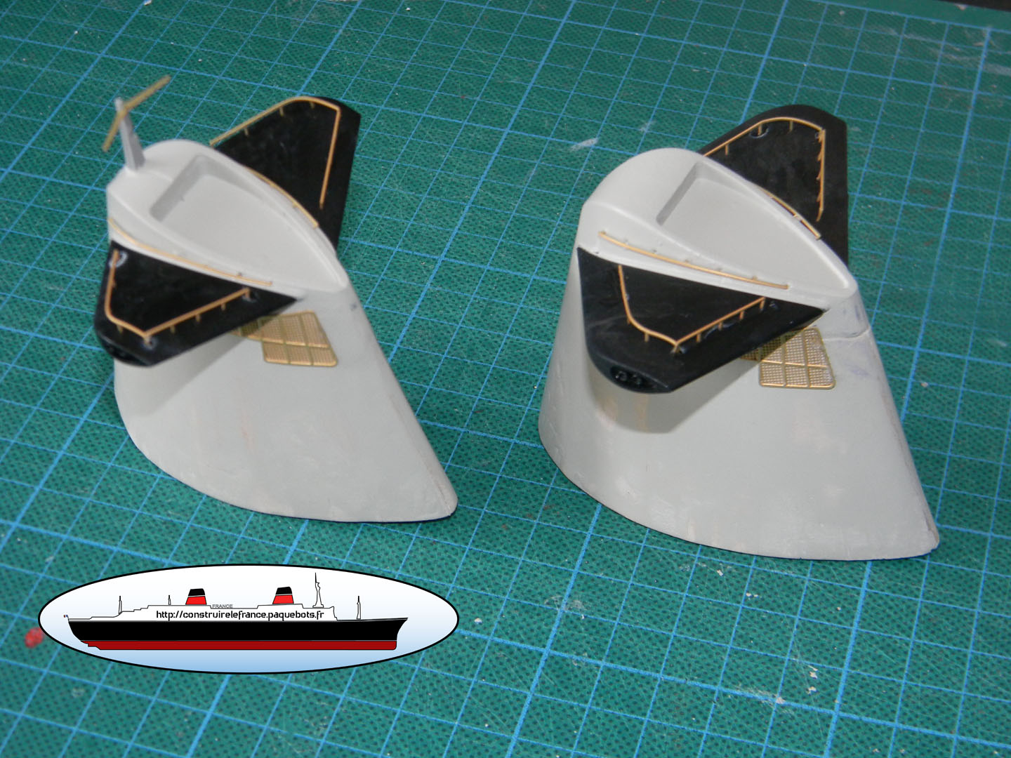 | Pour finir les 4 ailerons sont collées sur les cheminées. |