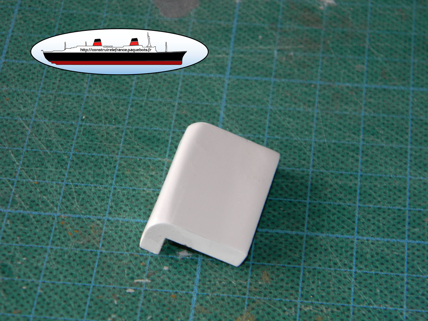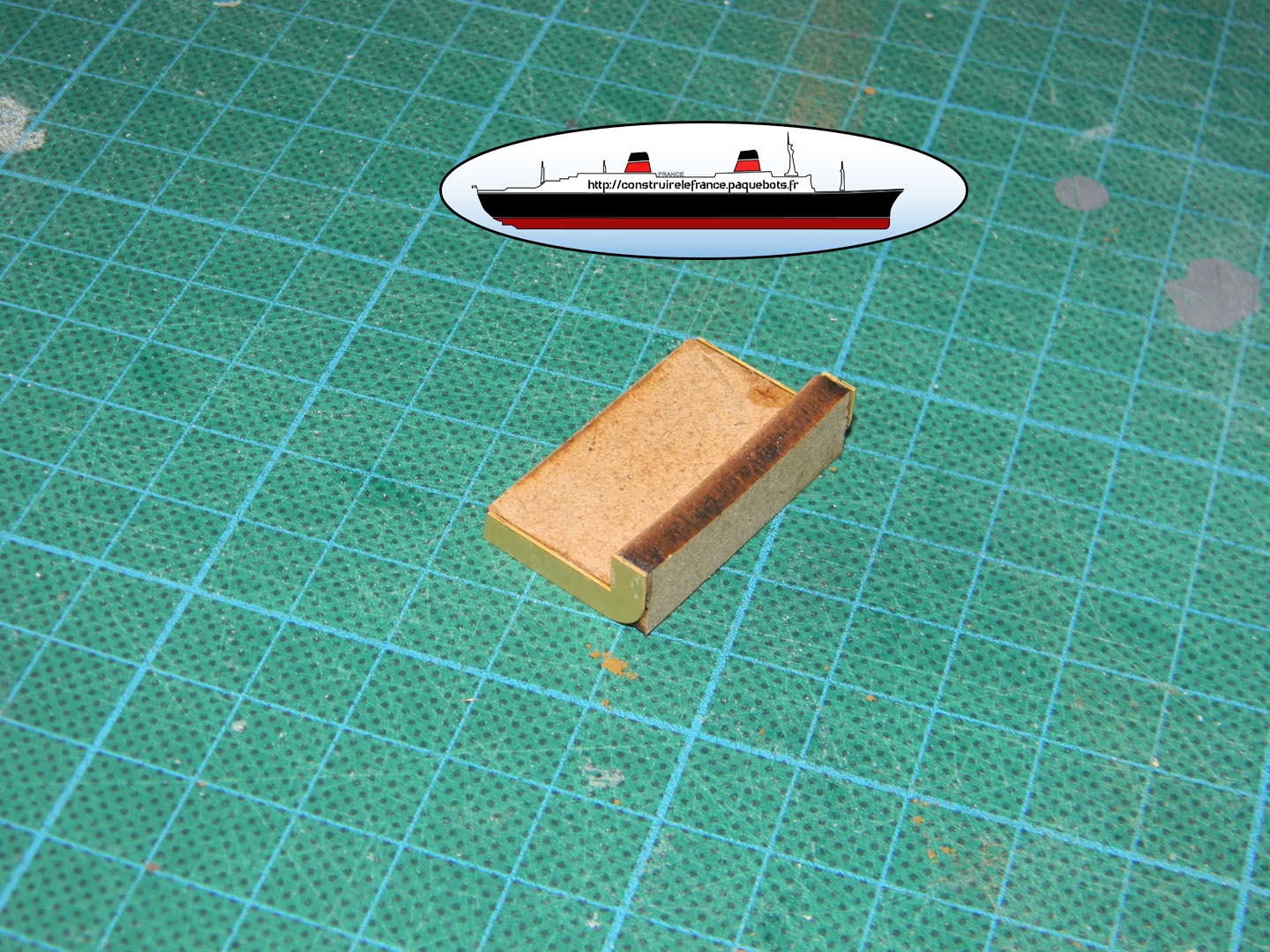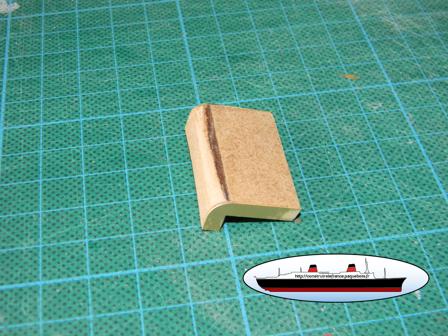 Hachette nous fournit un guide papier. Ce guide n’est vraiment pas pratique a utiliser. Je l’utilise juste pour l’espacement entre l’avant et la premier hublots ainsi qu’entre les deux hublots. Pour la hauteur je le fait « au pif » à environ 3mm de la main courante. |
