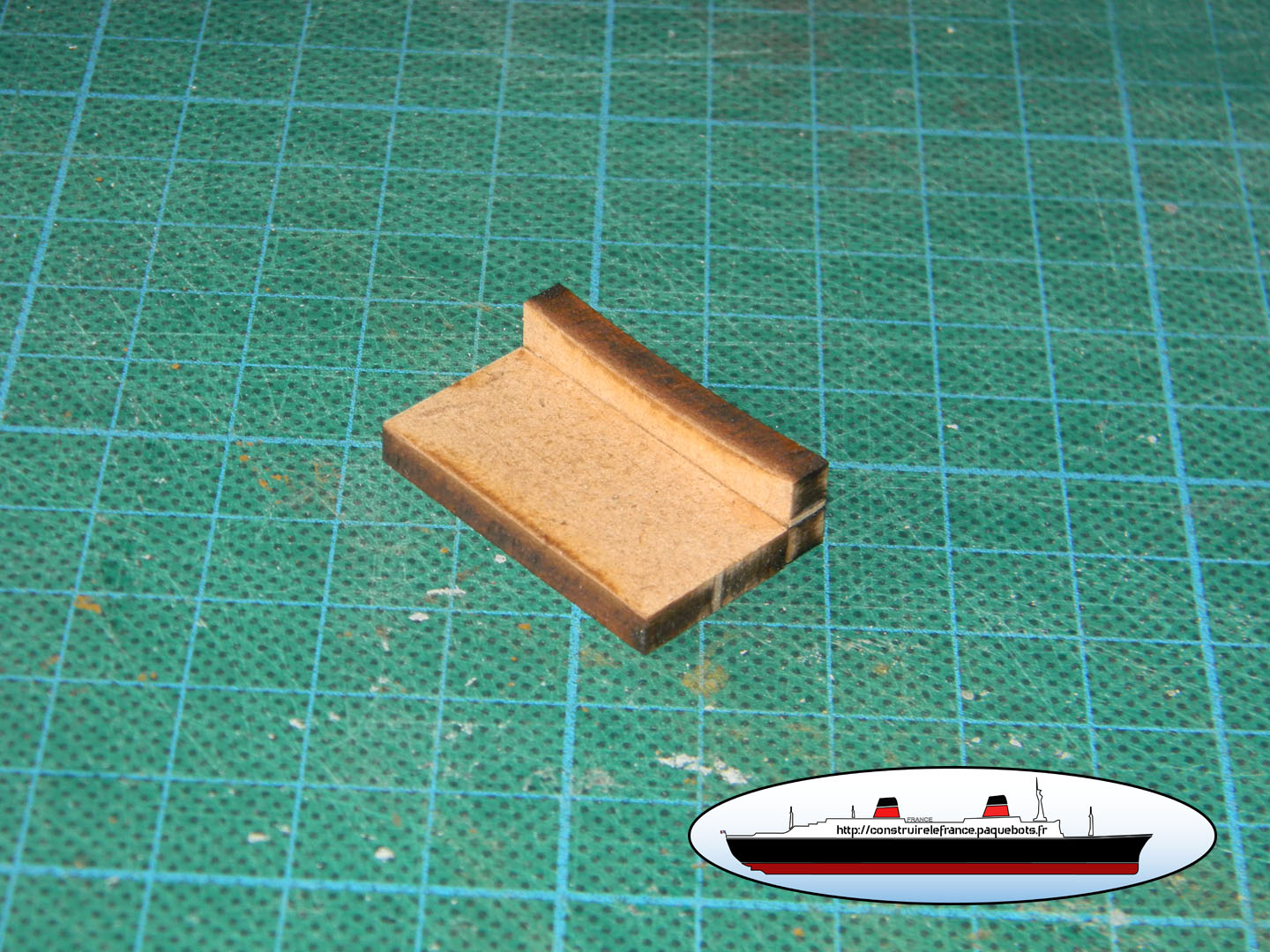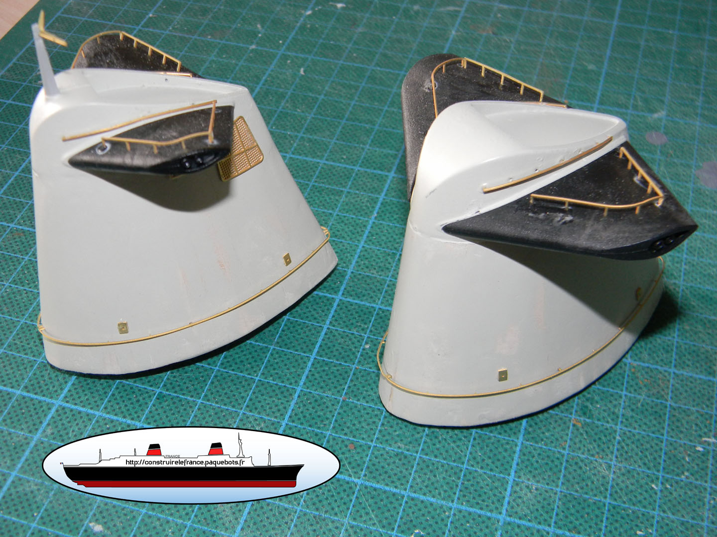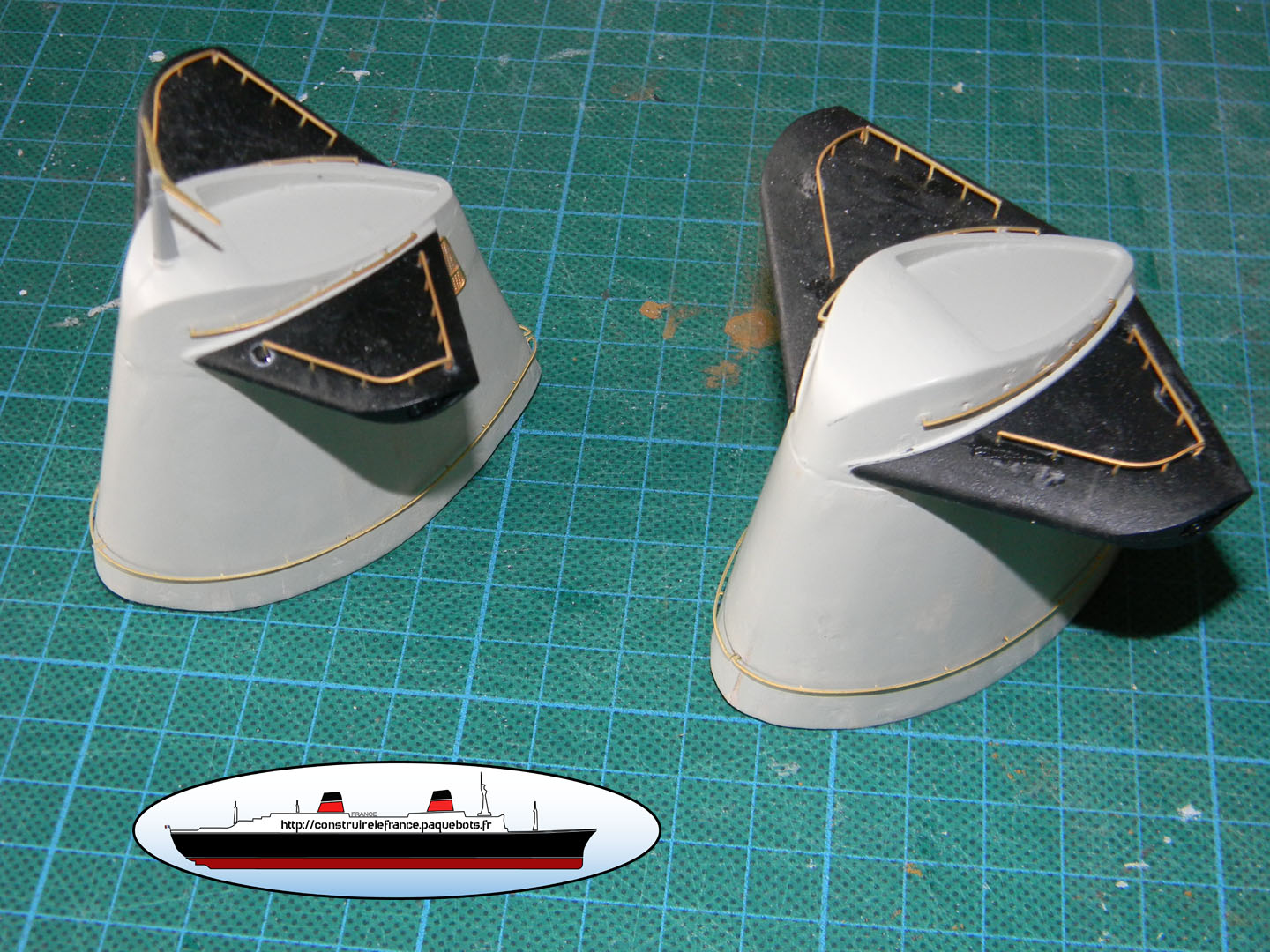 Hachette nous fournit un guide papier. Ce guide n’est vraiment pas pratique a utiliser. Je l’utilise juste pour l’espacement entre l’avant et la premier hublots ainsi qu’entre les deux hublots. Pour la hauteur je le fait « au pif » à environ 3mm de la main courante. |
